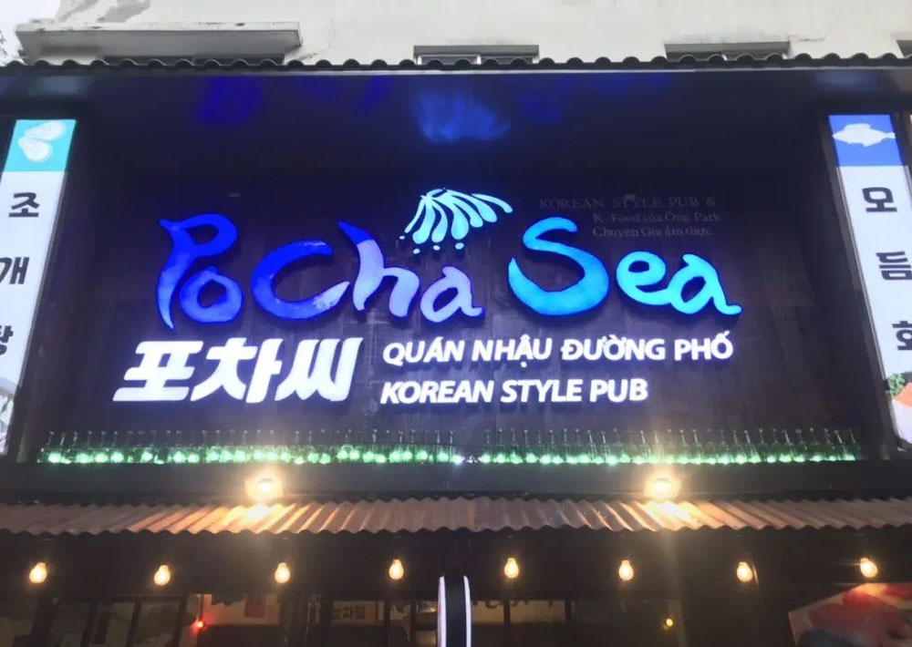Biển hiệu quảng cáo lĩnh vực ẩm thựcBiển hiệu PoCha Sea – quáng nhậu đường phố Vững Phạm Có 8+ năm chuyên tư vấn thiết kế thi công biển quảng cáo. Rất hận hạnh được phục vụ!