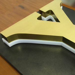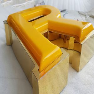 Mẫu chữ quảng cáo sáng chân mica, mặt inox tráng gương